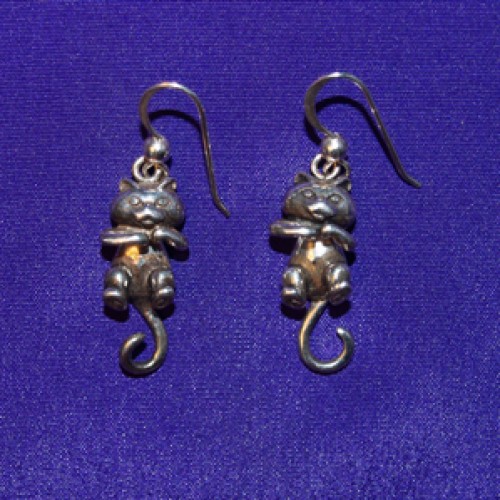 Cat Dangle Silver Earrings