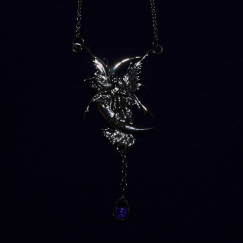 Silver, Stargazer Fairy Necklace with Purple stone. Height 6.5cm, Chain length 45cm