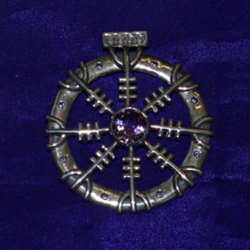 Large Wheel With Large Amethyst Silver Pendant