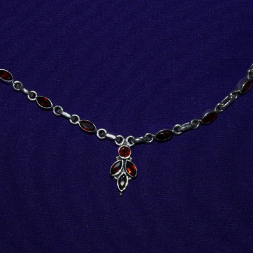 Silver Drop Necklace with Garnet. Length 48cm